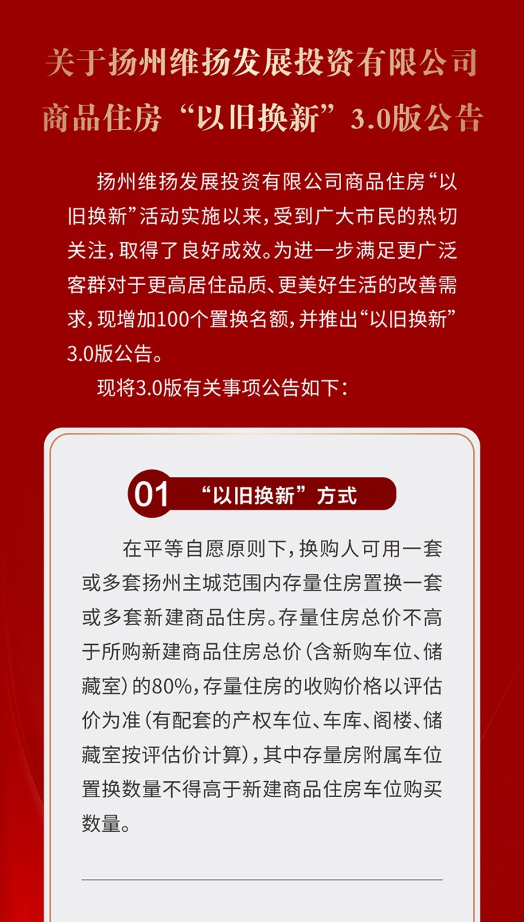 活動現場,不少客戶對以舊換新政策表現出濃厚的興趣,工作人員耐心為大家講解政策細則和辦理流程,整個操作簡便快捷,購房者只需通過線上報名,按照指引即可輕松操作,3.0版換購新建商品住房限額100套,換購人可通過登錄“維揚發(fā)投商品住房‘以舊換新’線上報名系統(tǒng)”報名,具體要求詳見公告。在政策的加持下,維投·山河序的熱度持續(xù)攀升,爆款之勢已然成型。