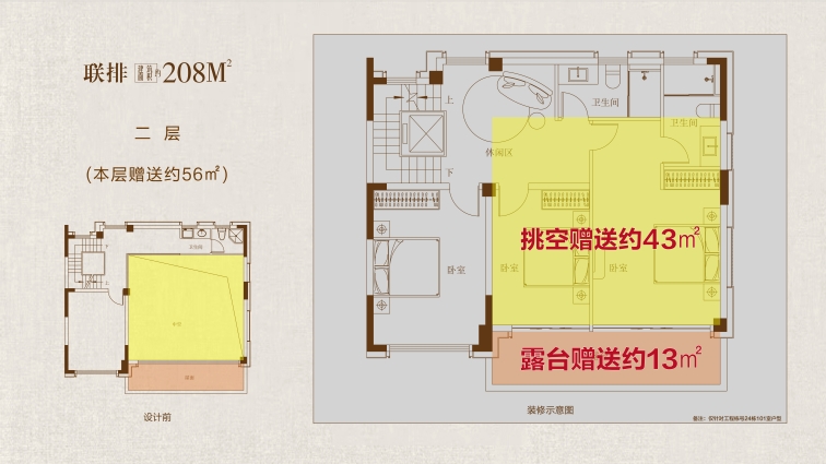 208戶(hù)型鑒賞: 大花園:戶(hù)均擁有約120㎡以上私屬庭院,可打造花園、茶室或親子活動(dòng)空間,延伸生活詩(shī)意 三開(kāi)間:約10.7米南向面寬,首層層高約3.6 米,采光通風(fēng)俱佳,營(yíng)造朗闊起居格局。 高附贈(zèng):地下室面積約108㎡,約 5.5 米挑高,可隔成兩層,打造影音室、健身房、酒窖等多元功能區(qū);一層餐客廳挑空,可拓展約43㎡贈(zèng)送空間;二層、三層配備景觀(guān)露臺(tái),陽(yáng)臺(tái)半贈(zèng)送;四層星空露臺(tái)全贈(zèng)送,解鎖生活多重想象。