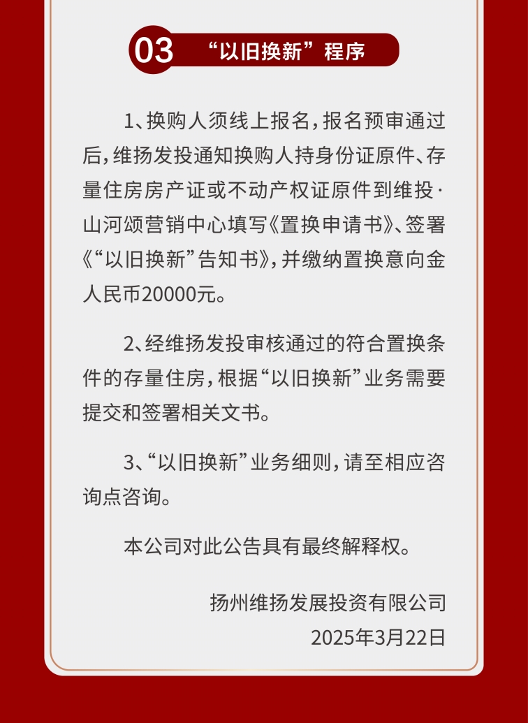 隨著培土奠基儀式的完成,維投·山河序正式駛?cè)虢ㄔO(shè)快車(chē)道,項(xiàng)目即將開(kāi)售。結(jié)合維揚(yáng)發(fā)投推出的以舊換新3.0政策,多維度降低了改善門(mén)檻。項(xiàng)目以墅質(zhì)產(chǎn)品哲學(xué),呼應(yīng)城市奮斗者對(duì)品質(zhì)人居與生活理想的雙重追求,以國(guó)企匠心為揚(yáng)州人居史鐫刻濃墨重彩的“山河序章”。